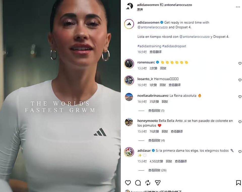 3分钟破千万播放!安东内拉与阿迪达斯合作视频 梅西点赞助推热度