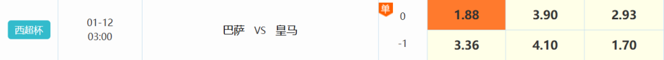 我认为两队实力差距并没有很大。虽然目前皇马可能会缺少姆巴佩,但球队依旧有很强的定位能力并且上轮比赛淘汰了马竞。皇马面对马竞中立场1档低位优势,巴萨此前面对马竞主场3档优势;皇马没有姆巴佩的情况下,主场4档大胜低位贝蒂斯,巴萨客场2档击败贝蒂斯,我认为巴萨和皇马目前的实力最多1个等级定位差距以内,巴萨会占有一点。中立场作战,两队上轮都顺利过关的情况下,巴萨目前2档高位,考虑到皇马首回合联赛取胜的吸引力,我觉得高位是有阻力的,本场看好巴萨一些,有望常规时间取胜。