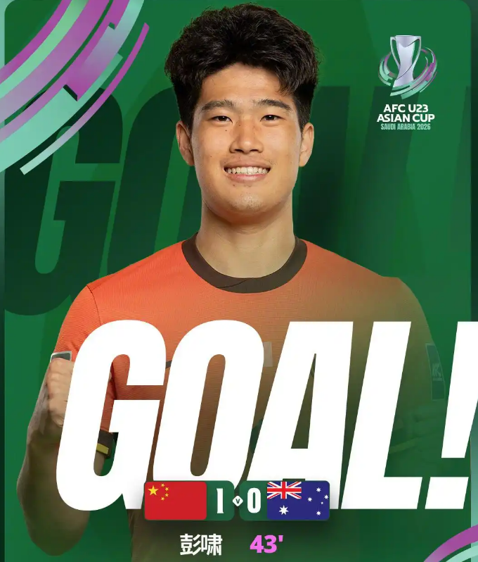 本场比赛第43分钟,U23国足获得前场定位球机会,王钰栋主罚,澳大利亚解围变助攻,彭啸迎球凌空爆射打进全场唯一一粒进球。下半场补时阶段,澳大利亚队利用进攻曾打进一球,但视频裁判最后确认,皮球最后时刻是被澳大利亚队进攻球员的左手手肘碰进球网的。
