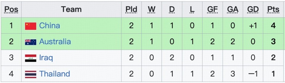 ③若澳大利亚输球,则积3分,伊拉克积5分,中国队与伊拉克队将比较净胜球、进球数、公平竞赛积分,决定小组头名。