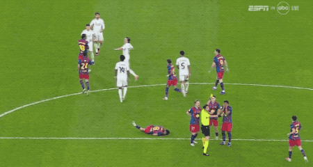 巴萨球员集体发泄不满,拉菲尼亚和德容不停和裁判沟通,裁判并没有做出任何追加的判罚。