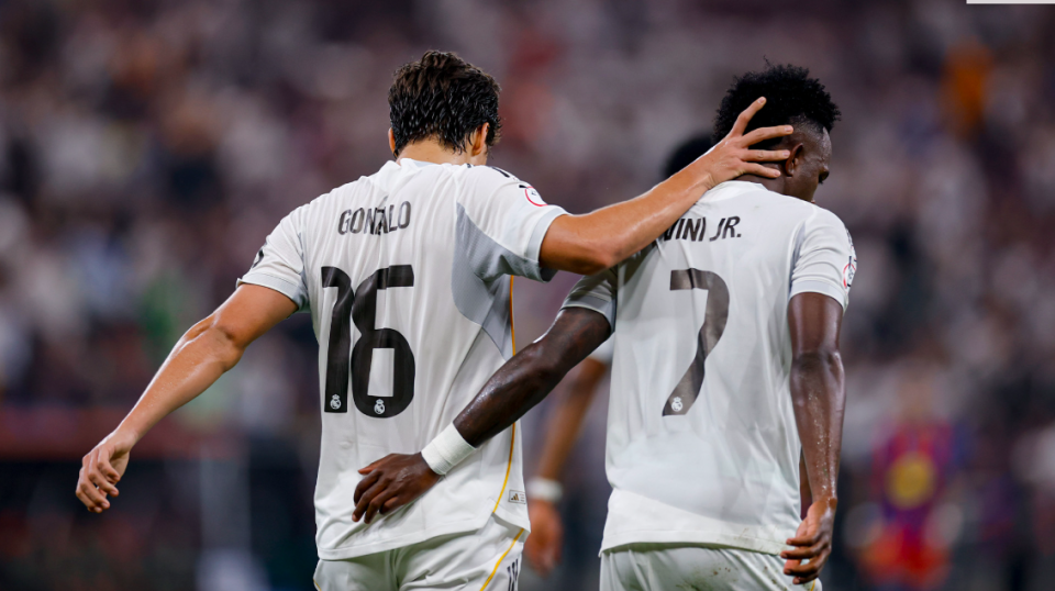 精彩的剧情在上半场的补时阶段上演。补时第2分钟,维尼修斯单枪匹马冲击巴萨防线,穿裆过掉孔德后,冷静破门。