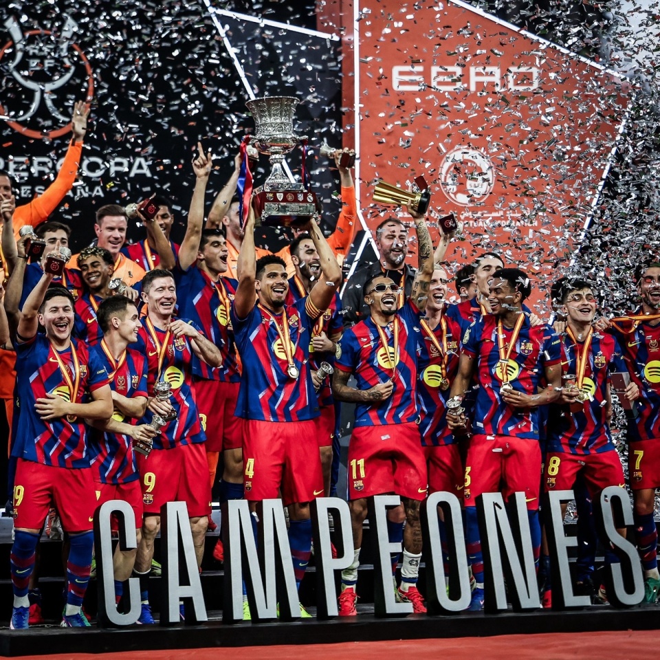 西班牙超级杯决赛,巴萨3-2皇马夺冠。拉菲尼亚失单刀+破门,维尼修斯一条龙建功,莱万再下一城,贡萨洛再扳平,拉菲尼亚再进一球,德容直红被罚下,姆巴佩复出替补登场。