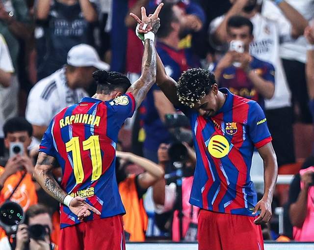 拉菲尼亚算是皇马克星,《世界体育报》给出数据:弗里克出任巴萨主帅至今,拉菲尼亚踢了5场国家德比,战绩是全胜,个人打进7球。去年1月的西超杯决赛,巴萨5-2横扫皇马,拉菲尼亚梅开二度;2024-25赛季西甲,巴萨4-0、4-3双杀皇马,拉菲尼亚2场打进3球。