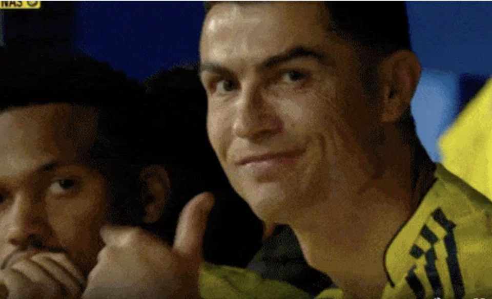 第89分钟,利雅得胜利再次送出点球,新月3-1领先。这时候,替补席上的C罗对着镜头微笑,并旋转手部,不知道是要表达什么意思。