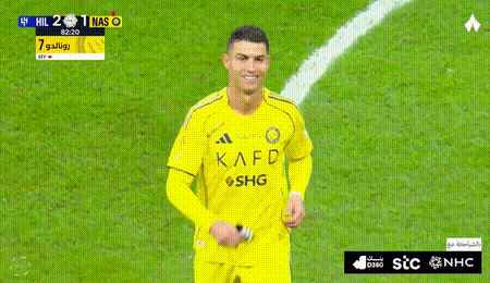 对C罗而言,今天的德比是不能输的决战,因为一旦输球,他们就会落后新月7分之多,这几乎是不可能翻越的天堑。比赛开始后,C罗努力冲击对方防线。第42分钟,他在门前凌空抽射破门,帮助球队取得1-0的领先。