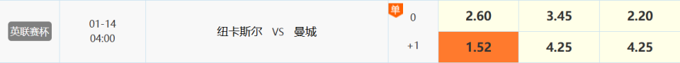 近期曼城确实有连平,但周末球队10-1大胜还是会留下不少关注度,同时周末曼城也进行了大幅度轮换,而纽卡打了加时赛的消耗战,主力阵容基本上都有出场,体能上也处于劣势。同时本场比赛只是两回合联赛杯半决赛的首回合,曼城客场本身也无需取胜,不败回到主场对曼城就是优势。客场1档优势退指均势,曼城本赛季各项赛事不败依旧很高,我认为对曼城可以接受平局这一点的担忧会被抵消掉,曼城不败就有利我觉得依旧很不合适。本场比赛看好纽卡主场不败。