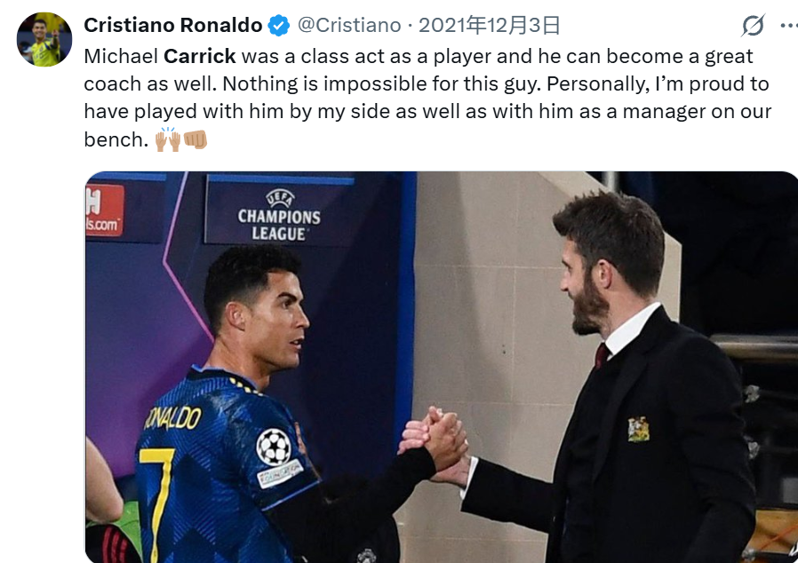 卡里克的执教能力,曾获得C罗的高度认可,他在几年前就表示:“卡里克球员时代很出色,他也能成为一名伟大的教练,对他来说没有什么是不可能的。”而对于后来的接任者朗尼克,C罗曾批评他根本不懂足球,不是一名教练,总裁也是爱憎分明。