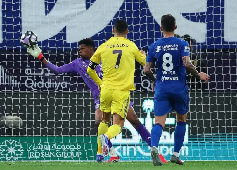利雅得胜利反客为主,在第42分钟率先取得进球。科曼在右侧送出助攻,C罗门前包抄,凌空射门把球打进。不过,在下半场西马坎犯下致命错误,犯规送点。达瓦萨里主罚点球,骗过门将把球罚进球门左下角。利雅得新月扳平了比分。这粒进球极大地提升了利雅得新月球员的士气。