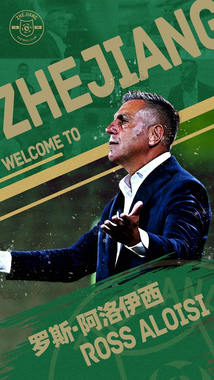 浙江官宣前海港助理教练罗斯·阿洛伊西担任主帅。