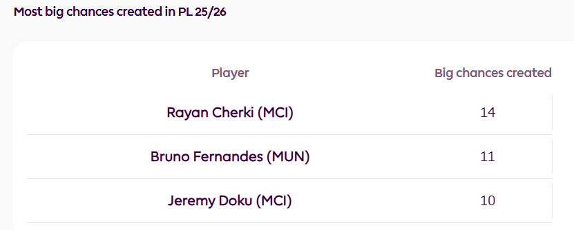 在创造绝佳机会这一项数据上,他的表现已经完成反超,数据层面不再是追赶者,而是压过了长期占据榜首的曼联队长b费,也领先于队内同样以突破见长的多库。