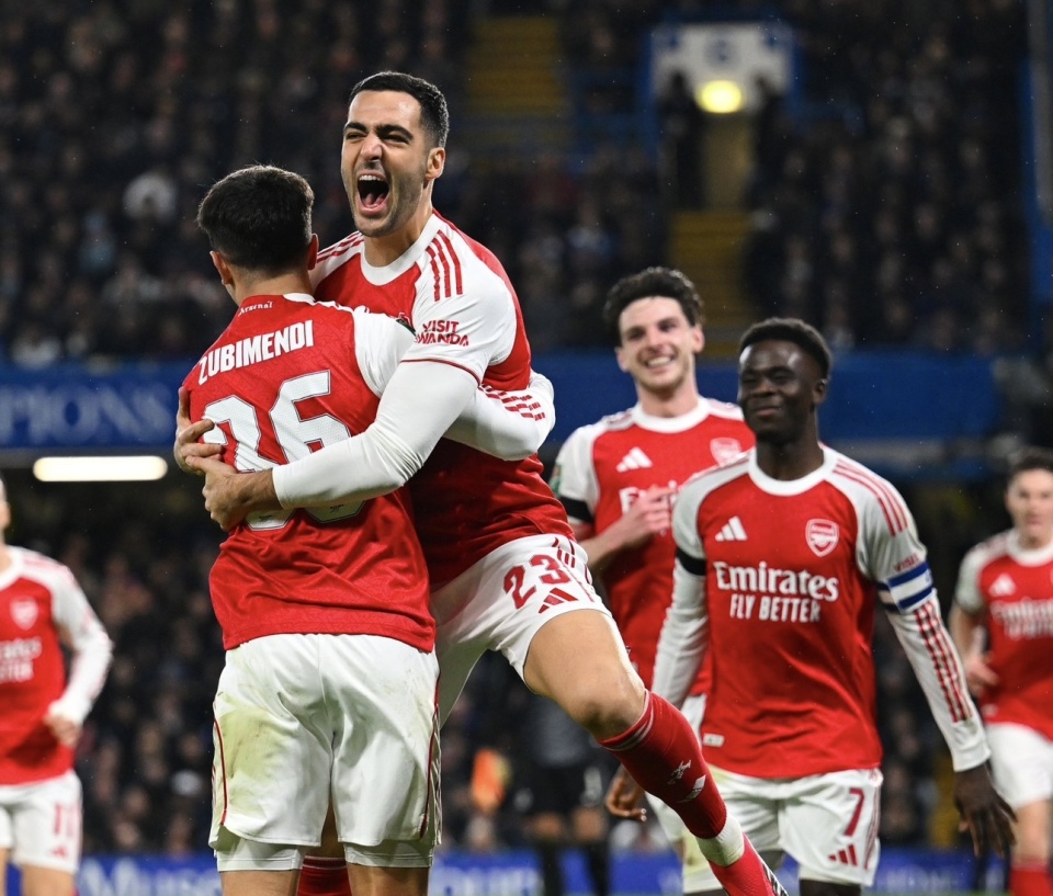 英格兰联赛杯半决赛首回合,阿森纳客场3-2切尔西占得先机,双方次回合比赛将在2月4日移师阿森纳主场。本怀特头槌破门赖斯角球助攻,哲凯赖什、苏维门迪进球,加纳乔双响。
