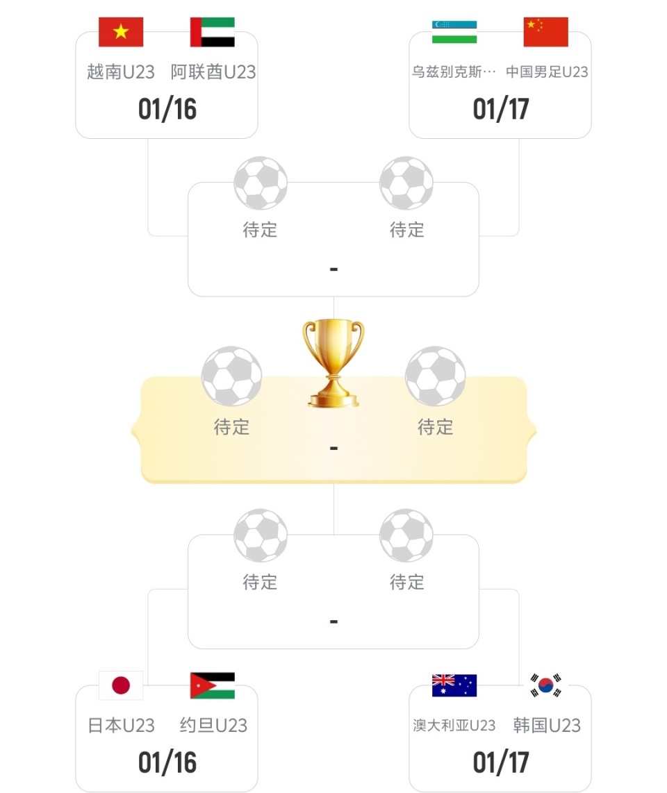U23亚洲杯1/4决赛:中国VS乌兹别克斯坦赛程出炉,韩日进死亡半区!