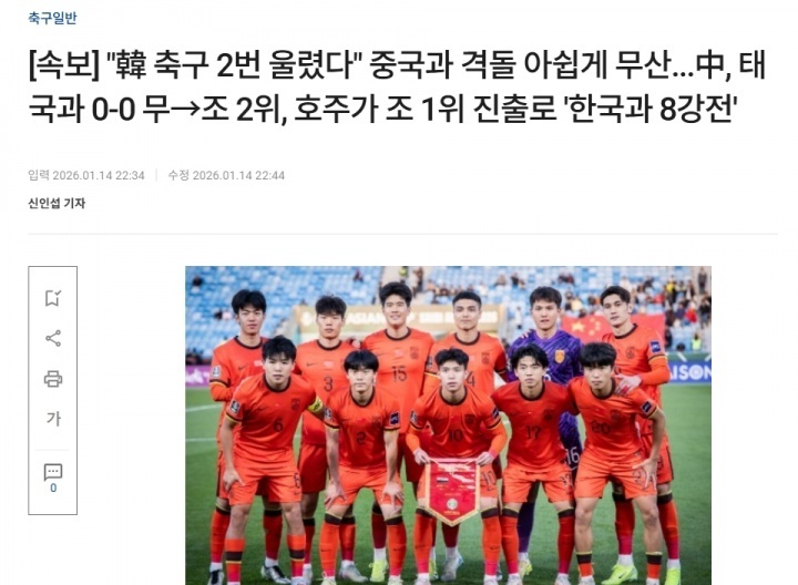 1年2次输还是不服!韩媒:遗憾无缘八强战对阵国足,复仇之战延期