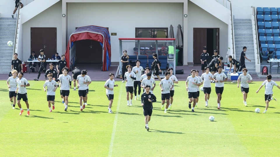 在仅对媒体开放前15分钟的赛前训练中,日本国青队23名球员全部到齐,进行了约一个半小时的训练,为当地时间次日下午2点30分开始的比赛做准备。