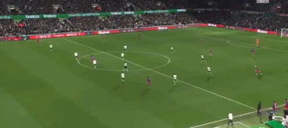 13分钟,拉什福德左翼传中,奥尔莫抢点弹射打偏。