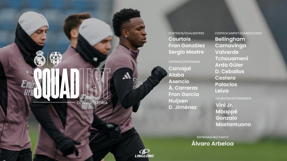 虎扑01月16日讯 北京时间1月17日21:00,2025-26赛季西甲联赛第20轮,皇马将坐镇主场迎战莱万特。赛前,皇马官方公布球队大名单,姆巴佩在列。