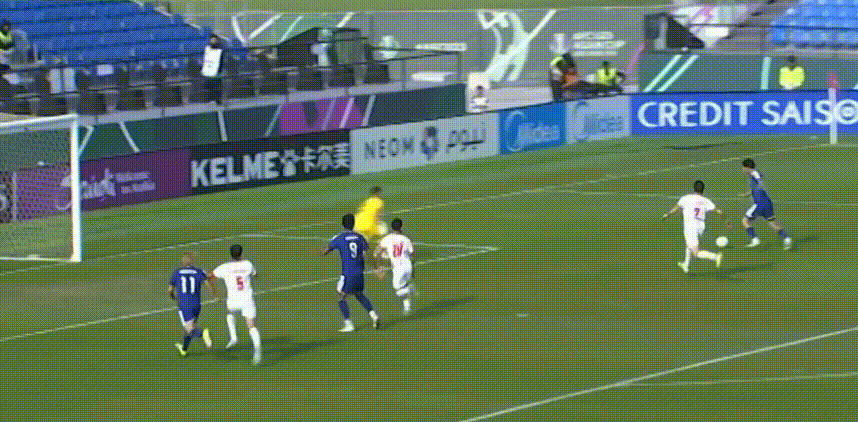 日本队利用中场休息的时间,进行了有效的调整,下半场开始之后,日本队迅速扳平了比分,也是抓住一次攻防转换的机会,趁着约旦队后防线球员还没有完全落位,日本队快速推进,梅木怜中路分球给到右边路,替补登场的古谷柊介一脚轻巧的小角度推射破门,日本队在第50分钟打进扳平的一球。