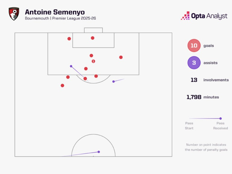 他同时也是英超创造机会最多的球员(56 次),并以 8 次助攻领跑助攻榜。