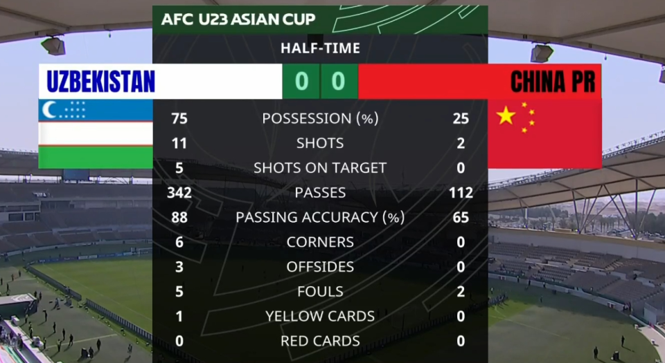 其实纵观整场比赛,乌兹别克斯坦队虽然占据了控球率上的巨大优势,但是他们的射门更多只能在禁区外。
