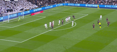 14分钟,贝林厄姆犯规,马丁内斯主罚任意球射门击中人墙,补射打高。