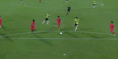 比赛的第38分钟,姜民俊禁区内铲倒麦卡利斯特,傅明第一时间判罚点球。随后,视频助理裁判介入判罚,并且要求傅明回看慢镜头。
