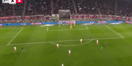 第20分钟,努萨左路斜传,劳姆插上传中,罗幕洛飞身铲射破门,诺伊尔无能为力,RB莱比锡打破僵局,1-0!