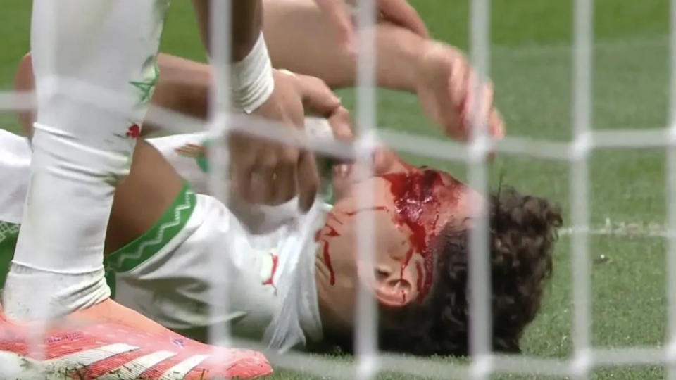 比赛第66分钟,摩洛哥中场(罗马)尼尔·埃尔·艾纳维与塞内加尔后卫(西汉姆)马利克·迪乌夫发生严重的头部相撞,艾纳维满脸鲜血倒地。