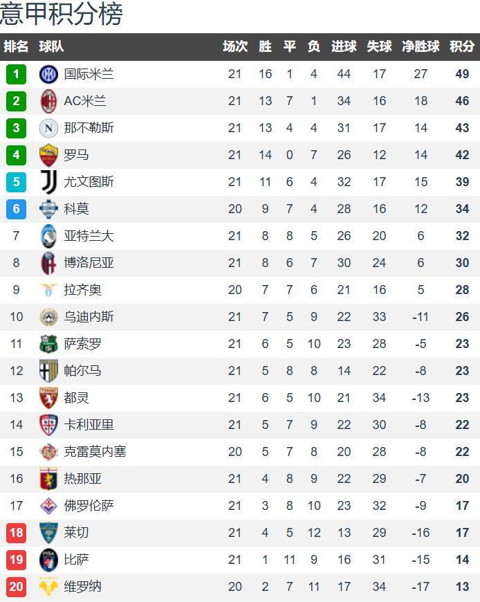 意甲21轮战罢,排名第二的球队是米兰双雄,国际米兰49分排名第一,AC米兰46分紧随其后,卫冕冠军那不勒斯43分排名第三。不得不说孔蒂称不上名帅,压根不会玩不来双线作战。齐沃成为国际米兰新帅,本赛季是巨大挑战,若能率队成功夺得意甲冠军,相信这是教练层面的完美更新换代。以国际米兰的实力和3分领跑优势,蓝黑军团会是本赛季意甲冠军最有力争夺者。