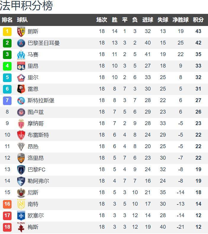 法甲18轮战罢,领头羊不是巴黎,而是朗斯,两队相差1分。由于巴黎在法甲是巨无霸的存在,因此朗斯虽然1分领跑,但相信巴黎随时会完成反超。法甲争冠往年是一家独大,本赛季也玩了一把刺激,这对于法甲联赛而言其实是好事。
