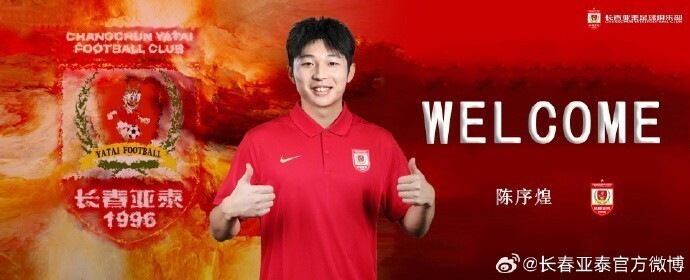 长春亚泰官方宣布,原上海海港中场陈序煌加盟俱乐部。