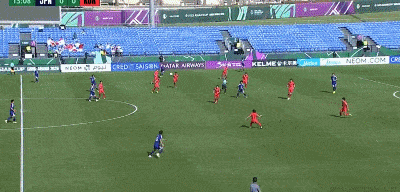 第26分钟,韩国左路定位球到禁区,金龙鹤头球攻门直奔球门右侧死角,皮球被荒木琉伟扑出。