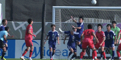 第37分钟,日本主罚右侧角球到禁区后点,永野修都头球攻门被弘成民扑出,门前的后卫小泉佳弦补射破门,日本1-0领先韩国。