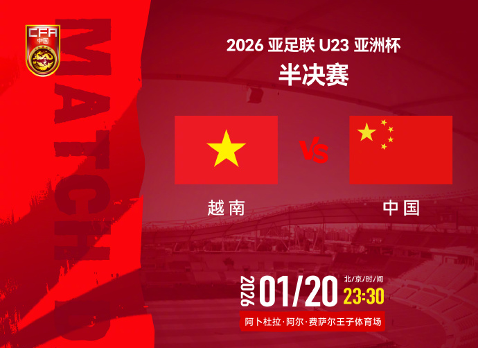 1月20日23:30,U23亚洲杯半决赛中国队将对阵越南队,这是两队在亚足联U23亚洲杯历史上的首次交锋,国足U23将为决赛资格而战!