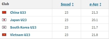 U23日本已狂轰12球+平均年龄20.1岁最年轻,国足0丢球最少