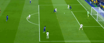 第18分钟,扎卡里亚斜传左路,卡约-恩里克倒三角传中,法蒂飞身抢点铲射踢呲,皇马逃过一劫。