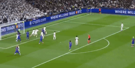 伤停补时阶段,居莱尔横传,马斯坦托诺右路起球,贝林厄姆头球攻门高出,皇马带着2球优势回到更衣室。