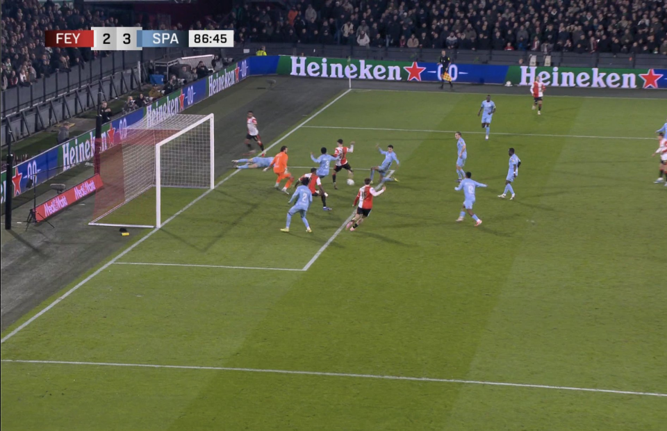 第87分钟,费耶诺德将球吊入禁区。沙奎尔高高跃起,在背对球门的情况下完成了一记极其漂亮的倒钩射门,皮球直挂网窝,将比分追至3比2。这一进球方式,瞬间让无数球迷想起他父亲职业生涯中那些标志性的凌空破门。