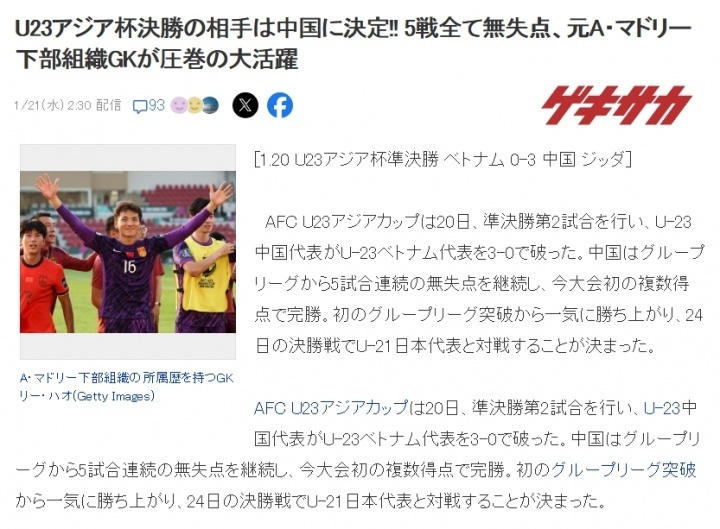 1月21日凌晨,U23亚洲杯的半决赛舞台,全世界见证了一场精彩对决!在不被看好的情况下,中国队3-0痛击越南队,强势杀入决赛,将与日本队争冠。很多日本球迷对此感到意外。