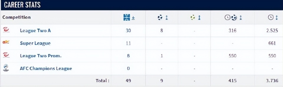 从统计数据可以看到,彭啸在过去2年的38场中乙联赛中一共打入9个进球。虽然中超踢了11场还没有开胡,不过在本届U23亚洲杯上,他又打入两粒金子般的进球。