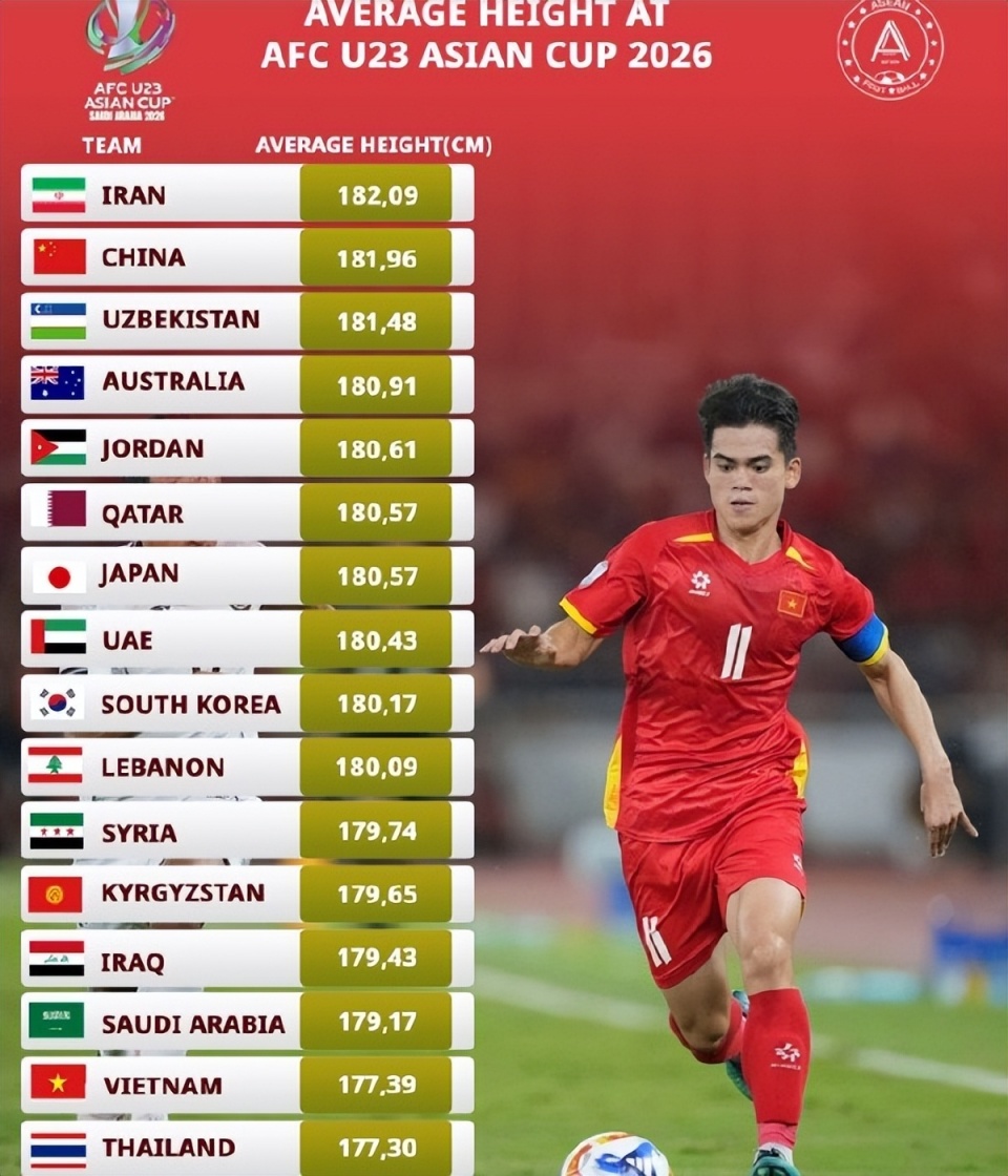 越南队的定位球也是他们的杀招,不过从身高上就能看到,U23国足比对手高出将近5公分,所以我们可以通过角球破门也不是偶然。