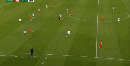 进军半决赛,安东尼奥和球员们正在创造U23国家队在U23亚洲杯上的最好成绩,但人总是贪得无厌的,赢不了球的时候想赢球,赢球了又想赢得好看一点。所以,四场比赛只进一球,几乎每场比赛都靠摆大巴,成为了这支U23国家队在赛前被人更多看到的标签。这在一定程度上是因为半决赛的对手是越南队。靠摆大巴耗掉澳大利亚和乌兹别克斯坦,中国球迷还能接受,如果对阵越南队也采用一样的战术打法,就算赢了也会给外界口实,就连越南媒体在赛前也这么认为,他们很好奇中国队在半决赛是否会延续此前重视防守,重视到开赛至今常规时间没有丢球的思路。于是在赛前,当被问到“0丢球,但进球很少,是否有想过改进”的问题时,安东尼奥说得很清楚:“我想赢球,我想赢球,零封和进球数都不重要,我想要赢得比赛的胜利。”所以相较于进攻或防守,相较于比赛中要采用的战术打法,安东尼奥更关心球员在上一场拼到点球大战的体能问题,这也使得他在首发名单上给了外界一个大大的惊讶,王钰栋、拜合拉木、徐彬等人全部坐上替补席,和上一场相比,U23国家队直接更换了6名球员。用半主力来打半决赛的排兵布阵,这看起来更像是要用防守反击来顶住对手,然后撑到下半场的调整阶段再收割比赛了。而开局阶段,似乎也印证了人们的猜测,配合略显生疏的全新阵容不仅出现了多次运转上的失误:先是在比赛第4分钟,越南球员在控制高球时出现犹豫,蒯纪闻因此打出了单兵突破和攻门的表现:随后在第8分钟,U23国家队展现了在防守端的一贯高水平,虽然没能限制住越南队起脚横移,但球员之间的职责交接非常清晰:来到左路防守也是一样,翼卫胡荷韬和边中卫刘浩帆之间的职责交接很清楚,当越南队向后带球,胡荷韬便放弃追击,刘浩帆也准备退回中路,但临走之前,他为胡荷韬指好了下一回合的防守对象:这次进攻被大脚解围后,越南队球员再次出现了防守高球时的失误,让向余望完成了带球向前和起脚攻门:总之,在开局阶段,U23国家队虽然出现了一些失误,甚至还曾给对手送出角球机会,但仍然凭借本届赛事中一如既往的防守能力,顶住了越南队的进攻,同时也试探出了对手在防守高球时的问题。还有一个关键的因素,那就是本场比赛的裁判尺度偏松,相对鼓励对抗:这样一来,U23国家队便找到了克制对手的有效方法,哪怕这是一支近似于半主力的球队,很多首发队员之前的出场时间寥寥,球员们心里依然有了底气。此前四场比赛,常规时间内一球未丢,这背后不仅仅是动辄多次扑救的李昊的功劳。从这场比赛的一些片段中就不难看出,这支U23国家队在低位防守时覆盖空间以及限制传球线路的能力。当边中场外扩防守的时候,同侧的前锋便会直接顺势落进中场线,填补边中场和其余两名中场的空间:到了另外一边的二防二场景里,越南队进行换位,但右翼卫杨希在兼顾位置的同时,看准时机坚决前顶,便重新夺回了球权:哪怕在外围的争抢中出现失误,涉及到中卫线的防守时,边中卫和中卫都能至少保证前顶到位,该给身体的时候能及时上身体,从而让越南队仅仅能保持球权,而无法打出反击:这样的防守,让U23国家队拥有了相对坚实的兜底能力,球队在防守时的思路不以争夺球权为主,主要讲求的是覆盖住关键空间,不让越南队球员轻易进入中路和肋部。至于越南队在边路尝试向前,或者越南队中卫的彼此传递,则是我们乐于看到的,毕竟等到夺回球权的时候,U23国家队就可以充分利用越南队站位形成的空间,来打出自己想要的速度和冲击力:然而,本场最令球迷们惊喜的是,除了防守反击之外,U23国家队展现出了更丰富、细腻的进攻套路。就像比赛第15分钟,U23国家队在持球时直接打进了前场中路,在越南队的防守腹地形成了连续传递,最后打出了高质量进攻:中国队证明了,他们并非没有技术,以至于只能打防守反击,更谈不上什么靠“摆大巴”摆进半决赛。一方面,单纯的摆大巴并不能保证防守效率,因为再好的门将也挡不住对手的狂轰滥炸。如果后卫不能替门将覆盖一些空间和角度,再好的门将都会被打漏。另一方面,没有反击的防守也是无源之水,因为再好的防守都不能坚持到90分钟。只有前场队员持续打出反击,哪怕是制造一些犯规,让后卫们喘一口气,球队才能在下一次防守时重新集中注意力。否则在被对手连续围攻的情况下,大部分球员都进入无氧状态,防守中的判断与选择必然会出现问题。所以,防守反击并不是外界印象中的低端战术,和控球相比,防守反击只是一种更看重空间利用效率,而不是球权利用时长的战术思路。更何况在这场比赛,U23国家队多次直接打进越南队的中路,这种直传和接应上的准确性,是不可能在短短几天内就能提高的:当然了,U23国家队在无球时依然能够稳固防守,在有球时也能精准处理,这都是好事,但想要赢球,还是要找到自己相对于越南球员的真正优势。整个上半场,U23国家队球员在和对手比拼身体素质的时候,要明显好出一大截,无论是在争球的时候,还是在对抗的时候:在这种情况下,U23国家队就要利用这种优势,多打长球高球,从而在偏松的执法尺度下,为自己获取更多贴身对抗的机会,可惜的是,上半场的U23国家队并没有如此行事,将球坚决地打进禁区内的次数并不多,机会也不多:以至于上半场,我们并没有制造多少真正有威胁的进攻,与对手互交白卷。从战术角度来说,这当然