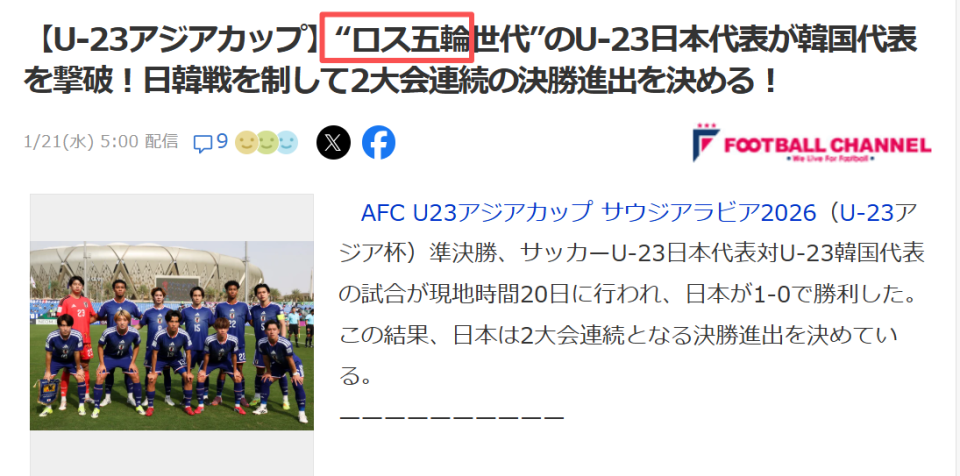 在理解这个问题时,我们应该先了解一个细节:这支球队,在日本国内和日本媒体上同时拥有的另一个名字是——洛杉矶奥运队(ロス五輪日本代表)。