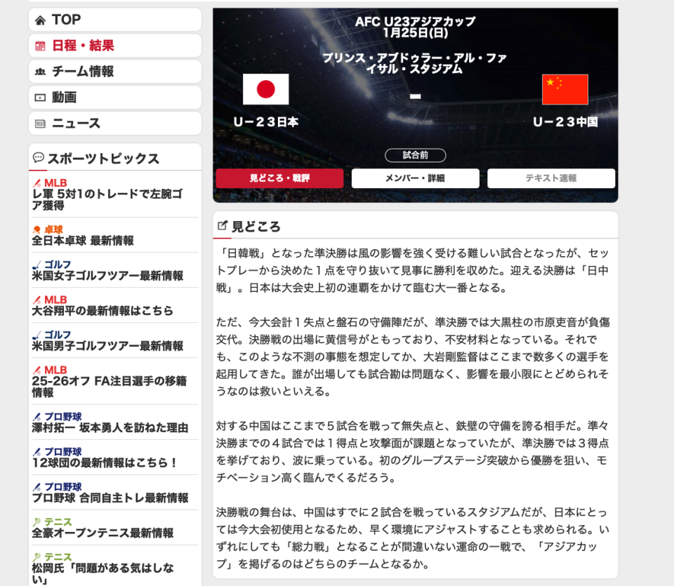 其实在上届U23亚洲杯中,中国队和日本队就曾有过交手,那场比赛日本队在开场17分钟就被罚下一人。但中国队却没能把握住机会,几乎是整场都多打一人的U23国足,仍旧以0-1输给了对手,不幸遭遇开门黑。而在两年之后,中国队和日本队就在U23亚洲杯中再次碰面,但和上次不同的是,这一次两队是在决赛中相遇。