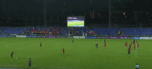 第19分钟,越南队任意球传到禁区被解围,阮泰山跟进远射高出球门。