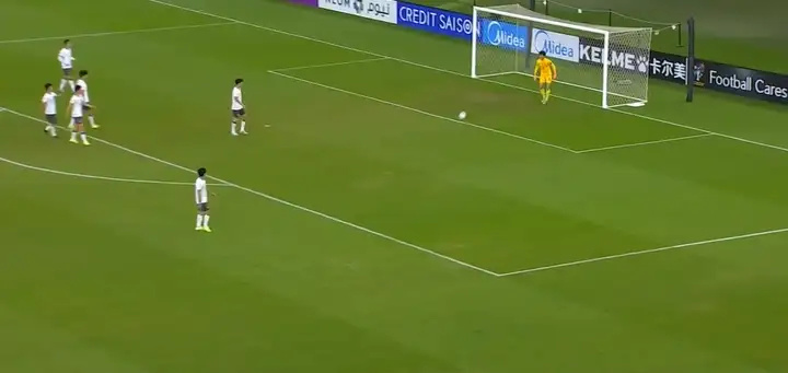 他先是判断准了,退后两步,来到球门线附近,等到球拼命向前旋转往球门里面转时,他是用双手将球挡了出去。