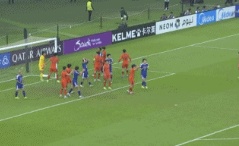 本场比赛,中国队依旧是532的阵型。开场后,日本队全力进攻。第5分钟,日本队拿到角球。角球开出来后,禁区里混战,日本球员恩瓦迪克近距离爆射,这脚射门威胁很大。不过,李昊反应极快,将球扑出!