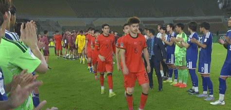 以0比4的比分负于日本之后,U23国足获得U23亚洲杯亚军。在赛后颁奖仪式上,两队互相为对方列队。