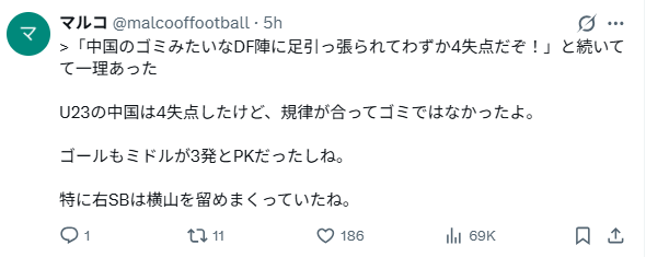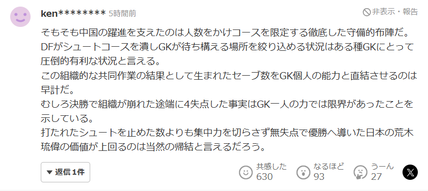 不过话说回来,不管过程如何,结果是丢了4球,在观感上确实还是稍显逊色。我当然非常清楚,失球绝对不只是门将一个人的问题。但要是情绪化地喊“不公平”,听起来就会让人觉得好像日本做了什么不正当的事一样,让人很不舒服。