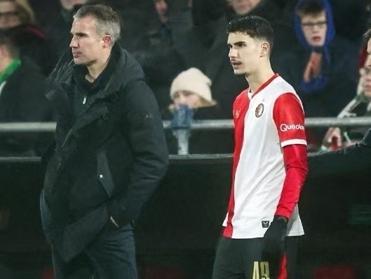 范佩西是曾经效力过费耶诺德、阿森纳和曼联的荷兰传奇球星,目前担任费耶诺德的主教练,他有一个19岁的儿子,名叫沙奎尔范佩西,出生于2006年11月,目前同样效力费耶诺德。荷甲联赛第19轮,费耶诺德主场迎战鹿特丹斯巴达,比赛第63分钟时,费耶诺德0-2落后于对手。这时候,主教练范佩西大手一挥,进行了换人调整,换上了自己的儿子小范佩西,这也是小范佩西第二次在荷甲联赛出场。